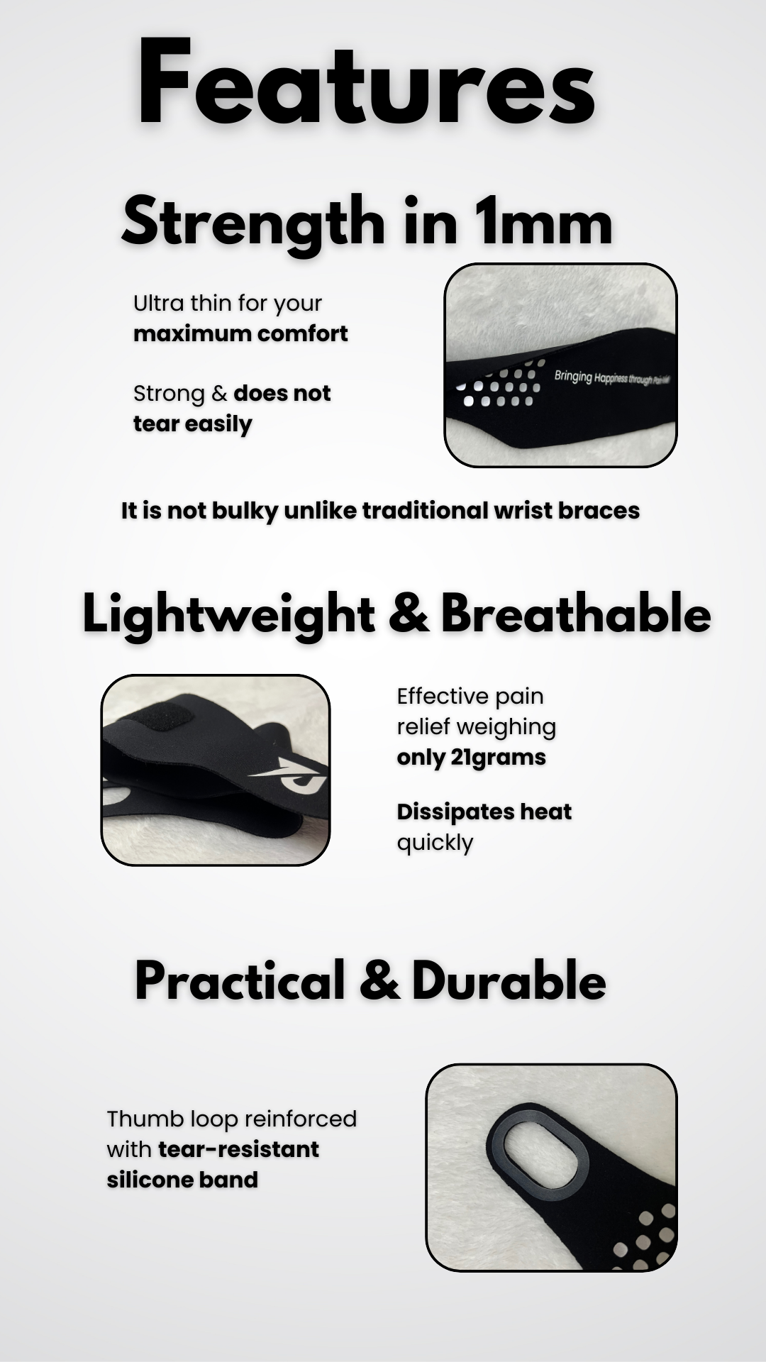 Feel a deep support for your wrist as soon as you put it on.